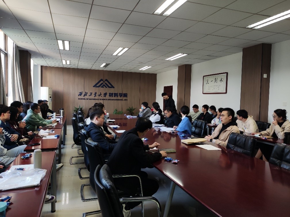 在公字楼322召开学生工作例会暨新入职学生干部工作能力培训。学院党委副书记蔡利剑、辅导员张曦、杨敏出席会议,全体兼职辅导员、助管共同参与。