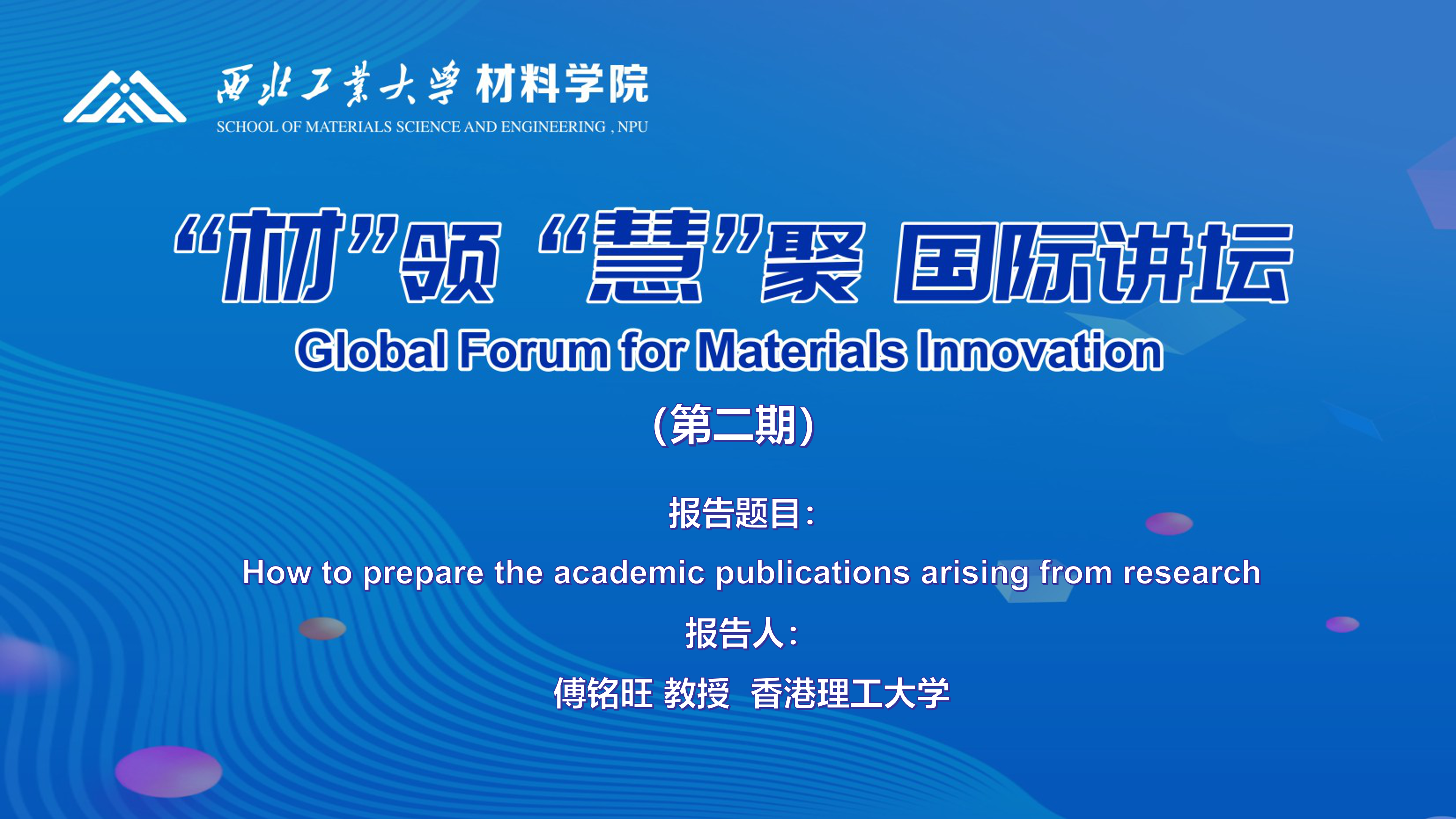 9月27日早上10:30,第二期“材”领“慧”聚国际讲坛在公字楼328会议室举办。本期讲坛特邀香港理工大学傅铭旺教授开展题为How to Prepare the Academic Publications Arising from Research的报告。