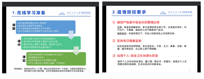 赵宇凡就后期宿舍生活与学习安排提出具体要求,强调要提高自律能力,并积极调整学习习惯,做到线上学习标准不降低;同时坚持每日疫情填报、定期进行宿舍卫生清扫,适度劳逸结合保障健康。
