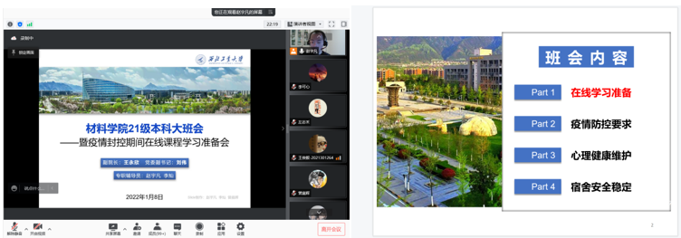 通过本次班会,相信在全体学生及教职工的共同努力下,西工大一定能战胜疫情,21级本科的同学们也将在即将到来的线上学习中做好学生本职,勤勉治学、共同进步!