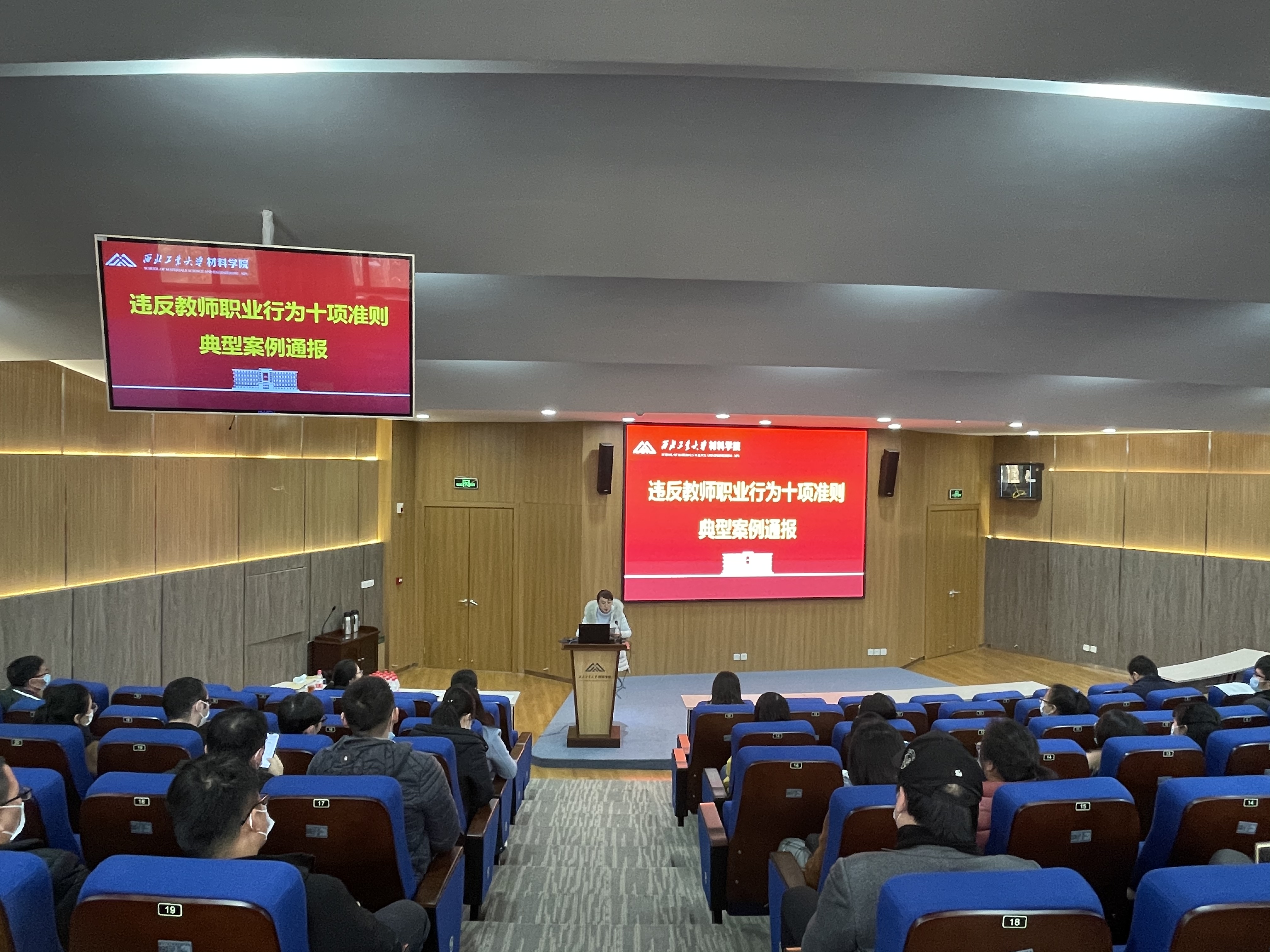 12月6日,做爱自拍 在研究生东馆会议室召开了全体教师大会,对部分违反教师职业行为十项准则典型案例进行了通报。做爱自拍 170余名教师参加,会议由做爱自拍 党委副书记罗皎主持。