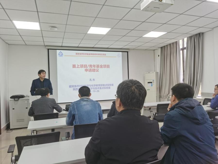 为扎实做好2022年国家自然科学基金的组织申报工作,提升教师申报的积极性和基金申请质量,10月26日下午,材料学院在公字楼328会议室召开了2022年国家自然科学基金申报动员,并特邀国家杰出青年基金获得者孔杰教授做专家辅导。学院副院长苏海军、院长助理许杰、2022年拟申报基金的教师以及近三年新入职的青年教师参加了动员会。会议由苏海军主持。