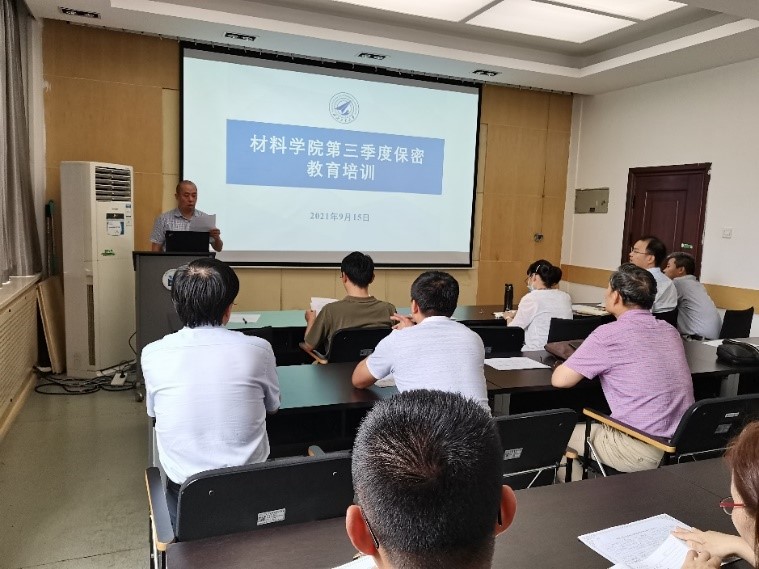 在公字楼334会议室召开了2021年度第三季度保密教育培训。院长李金山,党委书记付前刚,副院长苏海军,全体涉密人员及部分非密人员参加了此次会议。会议由苏海军主持。