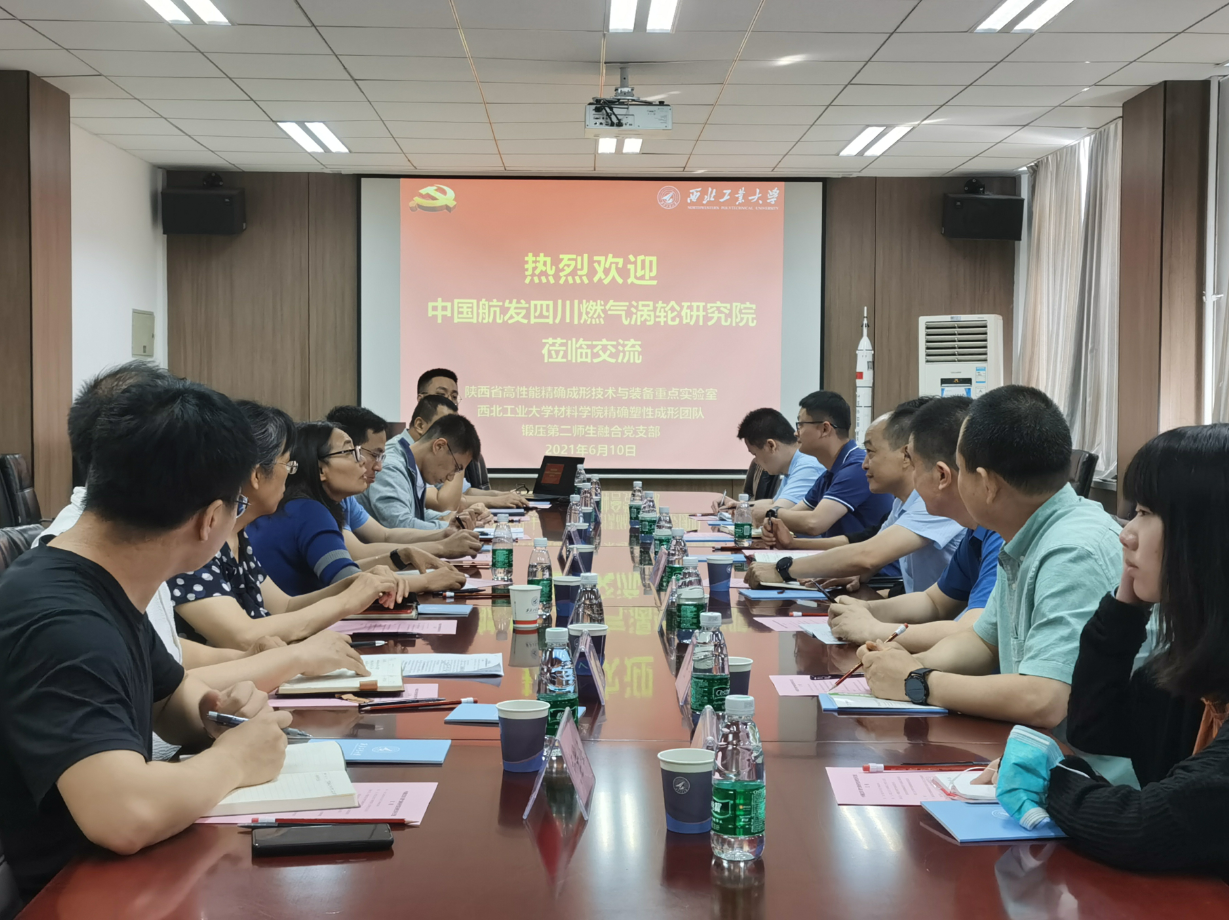 实验室主任詹梅首先对中国航发四川燃气涡轮研究院各位专家的到来表示热烈的欢迎。随后,郑泽邦教授向各位专家介绍了陕西省高性能精确成形技术与装备重点实验室的建设背景、研究领域、科研团队人员情况以及近年来取得的一些重要成果和应用,此外还介绍了团队所在的锻压第二师生融合党支部的基本情况和工作特色。中国航发四川燃气涡轮研究院潘代峰围绕发展需求、科研瓶颈问题、设计和制造的协调等内容详细介绍了研究院基本情况。会上,双方就发动机相关的总体设计、制造技术与工艺革新、“卡脖子问题”、党建工作等进行了深入细致的交流和探讨。会后,中国燃气涡轮研究院一行还前往材料科技大楼参观了实验室,并进行了合影留念。