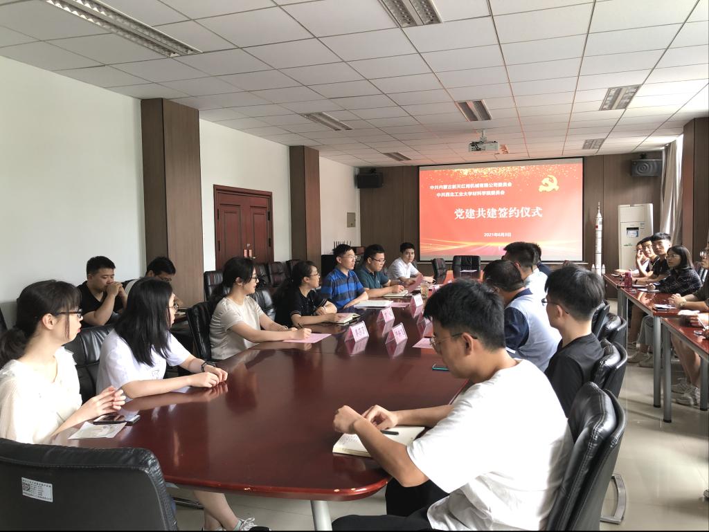党建、人才培养及科学研究等基本情况进行了介绍。郭晓东围绕研究方向、科研攻坚任务、学生入职待遇及后续职业发展空间等内容详细介绍了359厂基本情况,并对与会同学感兴趣的问题展开了细致耐心的交流,气氛热烈。随后,郭晓东结合单位发展历程,围绕航天人为了祖国航天事业的不懈努力和牺牲忘我的精神,为大家讲授了专题党课。为进一步加强沟通交流,发挥党建引领作用,双方签署了党建共建协议。