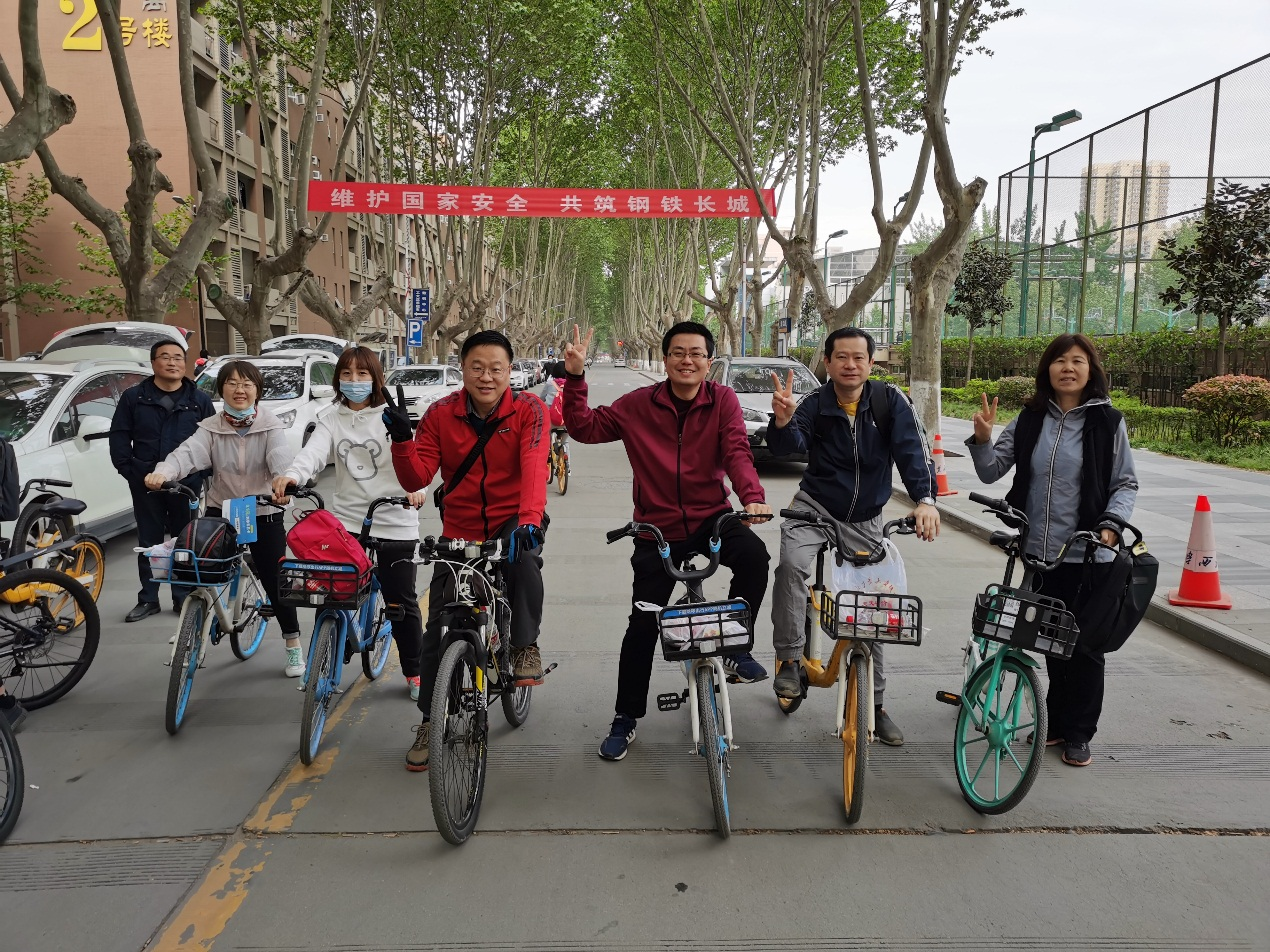 到新校区和尊广场后,大家一起合影留念,自由交流活动,骑自行车郊游顺利结束。