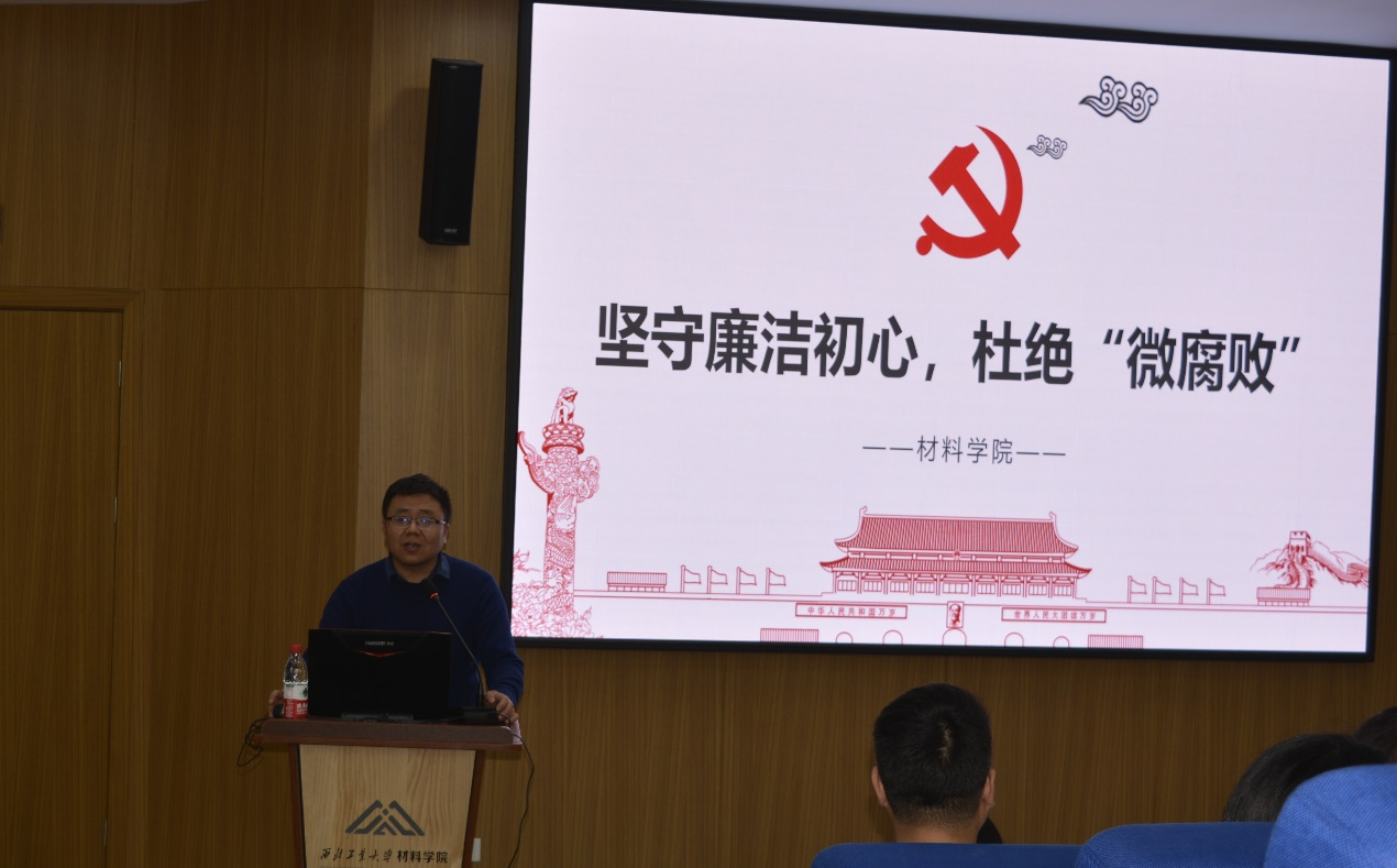 党委副书记刘伟线下为同学们讲授了廉洁诚信从业的报告,辅导员于君老师和2021届全体研究生认真听取了报告。
