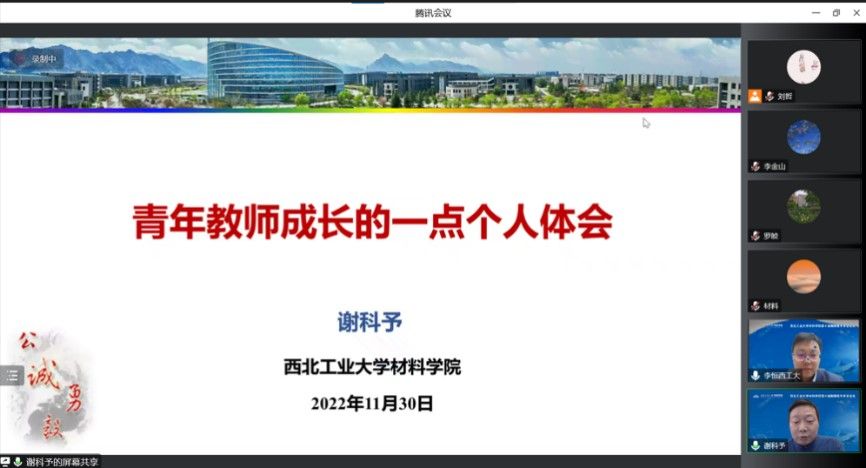 》和《相场理论和分子模拟在凝固科学中应用的个人探索》专题报告,详细介绍了相关学科研究进展、教书育人经验及个人成长发展心得体会。