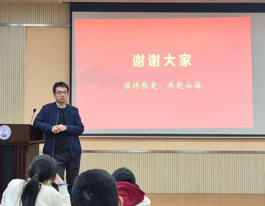 随后,黄斌老师简单回顾了近期班级活动和同学们的表现情况,对同学们近期在学院优良班风建设活动中所展现出来的团结互助、积极进取、勇于创新的精神面貌提出表扬,对于班级获得本次活动“优秀班集体”称号表示祝贺。同时结合期中考试结果,教导同学们在刻苦努力的同时,注重学习方法,合理利用课余时间,强调同学间互帮互助,共同提高,以期在期末考试中获得优异成绩。