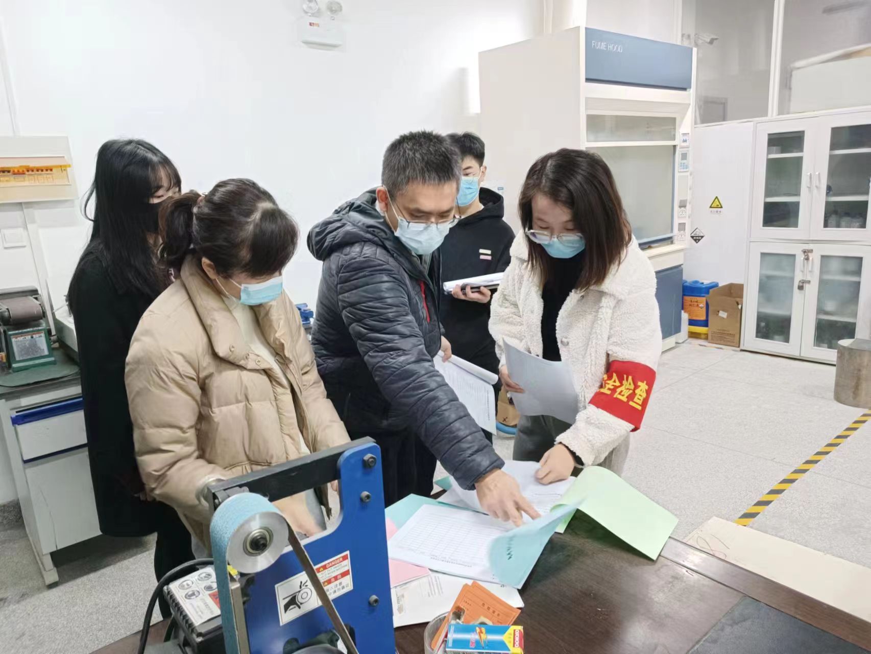 学院同时邀请了科学技术研究院缑林峰副院长等一行莅临现场指导工作,重点对学院安全生产管理制度、危化学品管理、应急预警、消防设施等情况进行现场督查和指导,提供了许多宝贵的意见和建议。根据《高等学校实验室安全检查项目表(2022年)》,结合学院实际,学院科研办制定了安全教育培训、消防设施维护、原有化学品库存盘点、药品试剂标签规范、管制类化学品存放、化学品存储与出入库、气瓶使用和危废管理等八个方面共三十二条安全标准。检查组成员根据制定的安全标准一一对标对表检查,重点对实验室危化品管理、易燃易爆气体检测、气瓶使用、消防、电路、危废处置等进行了全面细致的检查,对发现的问题与实验室安全负责人进行了及时沟通交流,提出了具体整改建议,并下发整改通知书,要求限时完成整改。