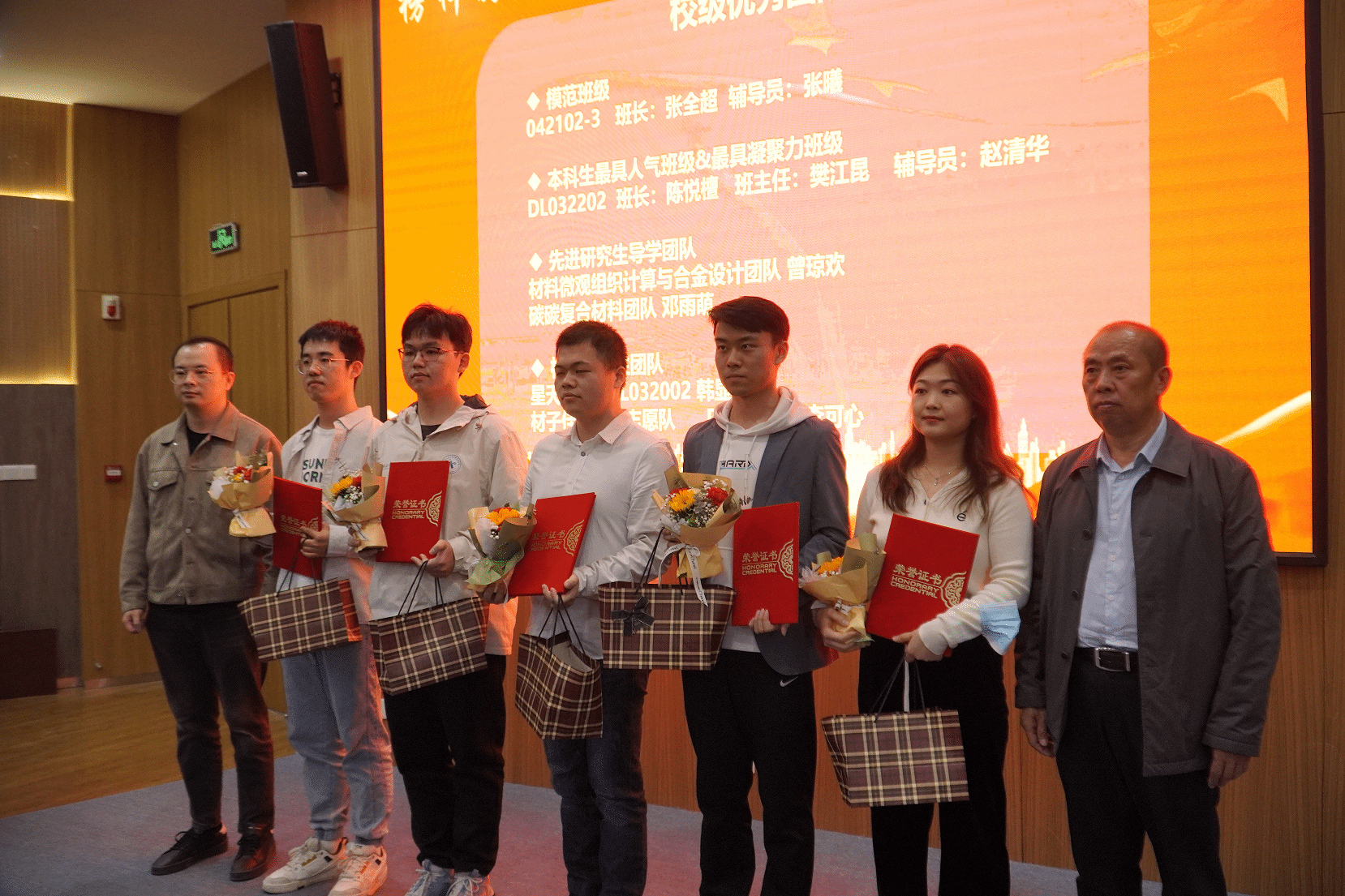 大会第三项,学院领导及设奖单位代表为获奖个人和集体颁发证书、奖品并合影。