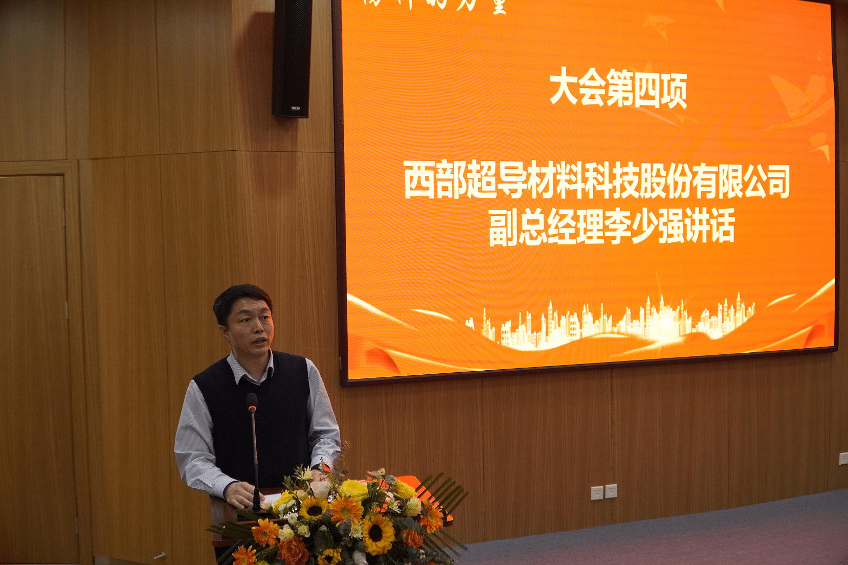 大会第四项李少强作为专项奖学金设奖单位代表进行了致辞,他向获奖的个人和集体表示热烈的祝贺,并介绍了企业、行业的发展现状,讲述了西部超导公司与做爱自拍