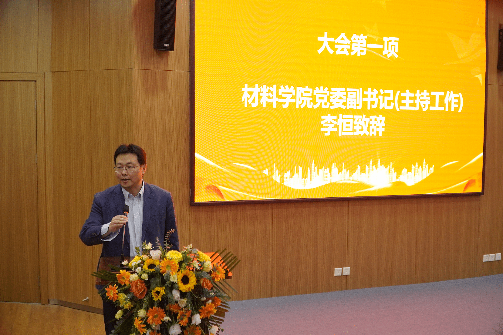 大会第一项李恒致辞,他向参加大会的企业领导表示热烈欢迎,并向捐资设置专项奖助学金的企业和单位表示诚挚感谢,向获奖及受表彰的学生个人和集体表示衷心的祝贺。