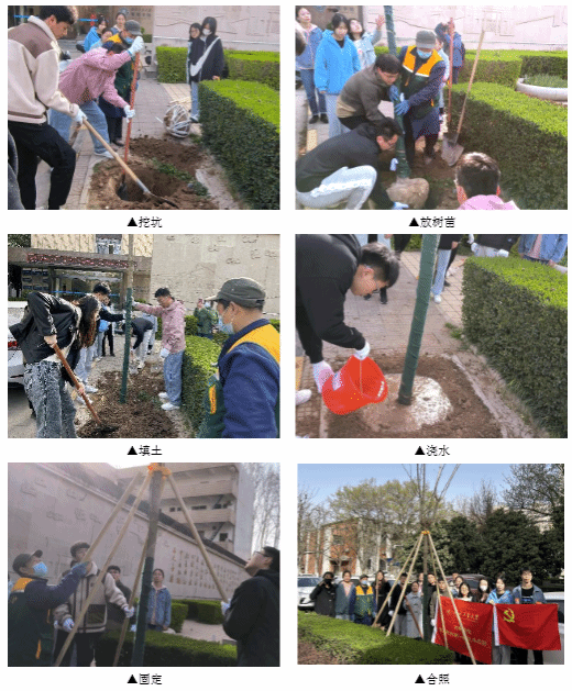 在3月12日植树节当天,支部志愿者加入到绿化校园的队伍中,第一次在工大校园内学习种树。在最后一步固定树干完成后,志愿者们也不忘将树坑旁的散土和垃圾清扫干净。活动期间,后勤集团老师不时为志愿者们讲解校园中各类树木的知识,帮助队员们更好地了解校园和后勤老师的工作。志愿者们也学习到后勤集团老师全心全意维护校园环境的职业精神。同时,参与这次活动的研三同学表示很高兴可以为工大的绿化环境出一份力,认为这是最好的毕业纪念!