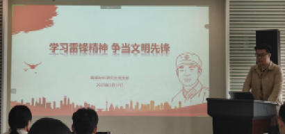 紧接着张杰克讲授了“学习雷锋精神 争当文明先锋”的主题党课。带领大家学习雷锋精神,理解雷锋精神时代内涵,继承发扬匹夫有责、大爱无疆和助人为乐的雷锋精神。鼓励支部成员们将志愿精神融入生活,奉献青春力量,践行雷锋精神。