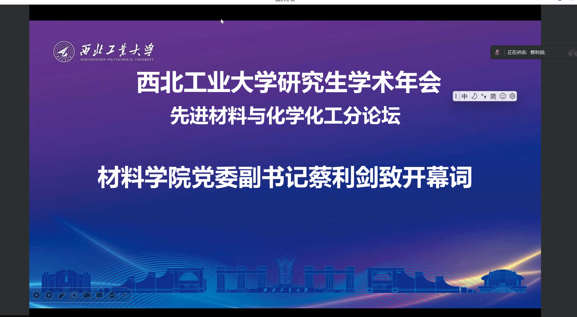 党委副书记蔡利剑在开幕致辞中预祝此次学术论坛顺利召开。他表示,高校是推动社会进步的主力军,要贯彻“教育优先发展、科技自立自强、人才引领驱动”的重大战略。此次论坛是落实党的二十大精神的重要体现。材料与化工是国家发展,改善民生的关键技术,通过此次学术论坛,希望同学们进一步聚焦该前沿领域问题,广泛交流,发散思维,展示自我。