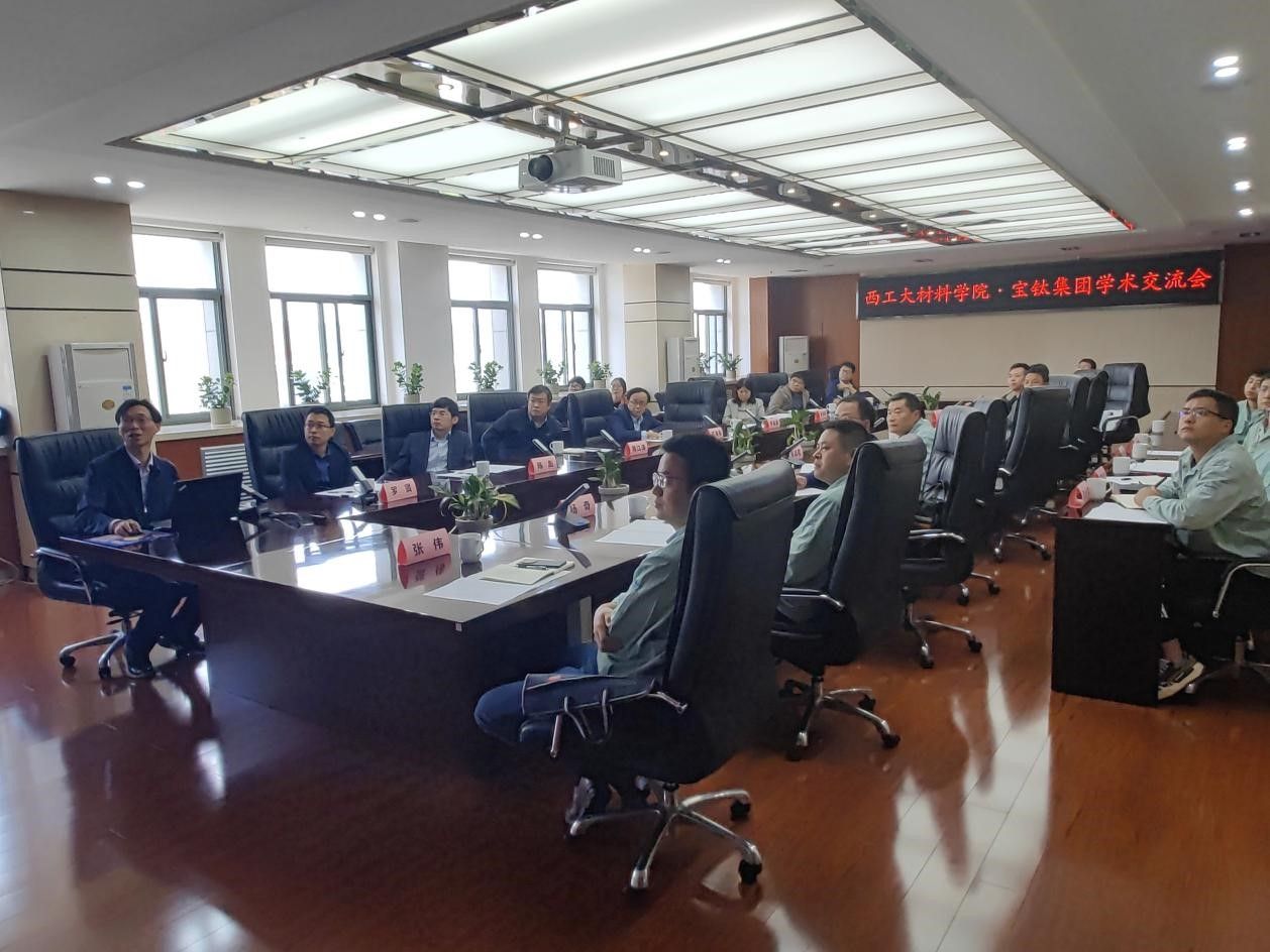 随后双方开展技术交流。宝钛集团陈战乾副总经理、宝钛集团宝钛研究院王小翔副院长及集团公司10余人参与了交流会。会议由陈战乾主持。陈战乾介绍了宝钛集团技术更新所需求的具体方向,苏海军对此行关注的重点方向进行了介绍,并介绍了学院的基本情况、学科特色、优势研究团队成果以及产业转化等情况。随后,李淼泉、熊江涛、罗贤、樊江昆及西安建筑科技大学崔春娟分别做了学术交流报告。报告结束后,双方就关注钛合金研发、钛合金制备及加工、固相焊等方面进行了深入的探讨交流。