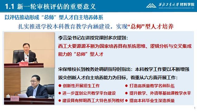 会议指出,要认真落实学校要求,扎实推进本科教育教学内涵建设,不断增强拔尖创新人才自主培养能力,切实抓好招生、公共教学平台、特色系列教材、高质量教学名师队伍建设和提高本科毕业生深造质量等重点工作,以评估推动形成“总师”型人才自主培养体系。