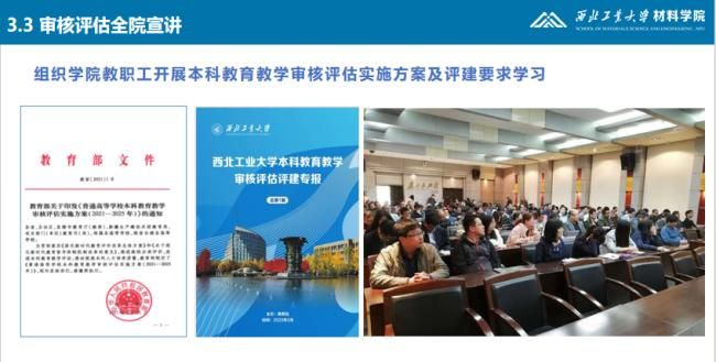 召开全体教职工会议,对迎评各项任务进行了安排部署,221名教师参会。副院长王永欣讲解了新一轮本科教育教学审核评估的重要意义、总体目标、指标体系和评估程序,介绍了学院本科教学取得的主要成绩和本次迎评工作开展情况,明确了下一步工作重点和工作要求。