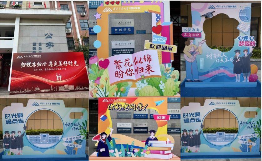 秋日校园,绿树萌荫、绿草青青,梧桐树下的柏油路平整而干净,静谧素雅的教学区处处飘荡着书香味......为了更好地衬托学校的高“颜值”,营造温馨、舒适的学院文化,让校友第一时间感受到母校“爱子心无尽,归家喜及辰”的满心期待和喜悦,学院对公字楼、研究生东馆、材料科技大楼等楼宇环境进行提升,并摆放校友周主题桁架、拍照墙等,让校友周活动深入师生之心、把“盼归之情”传递给每一位校友!