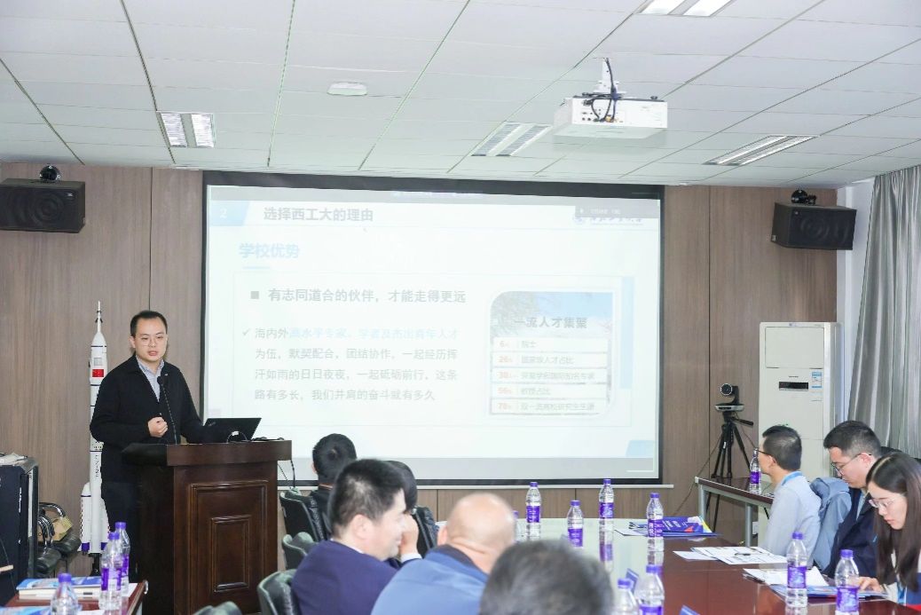 李金山介绍了学院的历史沿革、学科发展布局规划、学院师资力量、教学科研和国际合作情况、取得的成果、对青年人才的支持举措及西安的地理人文环境等情况。他讲到,西工大做爱自拍
