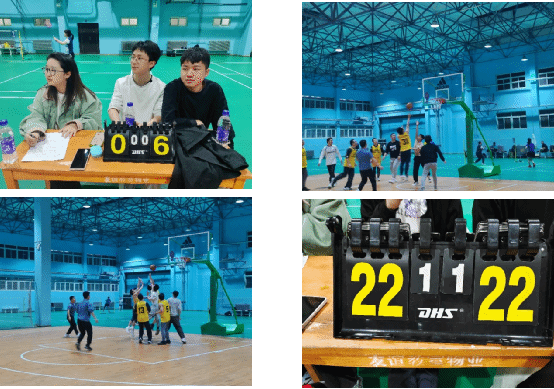 比赛第一节,毕业生代表队率先发起攻势,在场面上占尽上风,第一节结束时领先教师队6分。第二节教师队做出战术调整,渐渐的找回比赛的感觉,开始与毕业生代表队在场面上平分秋色,但在中场休息时总比分仍然稍有落后。进入第三节,双方手感愈佳,开始有不少三分球的出现,第三节结束,双方的分差缩小至了仅仅两分。最后一节,教师队开始稳扎稳打,做好防守的同时,在进攻方面也很有耐心,在比赛最后二十秒时追平比分,随着全场比赛结束哨声响起,双方比分最终定格在了52:52。