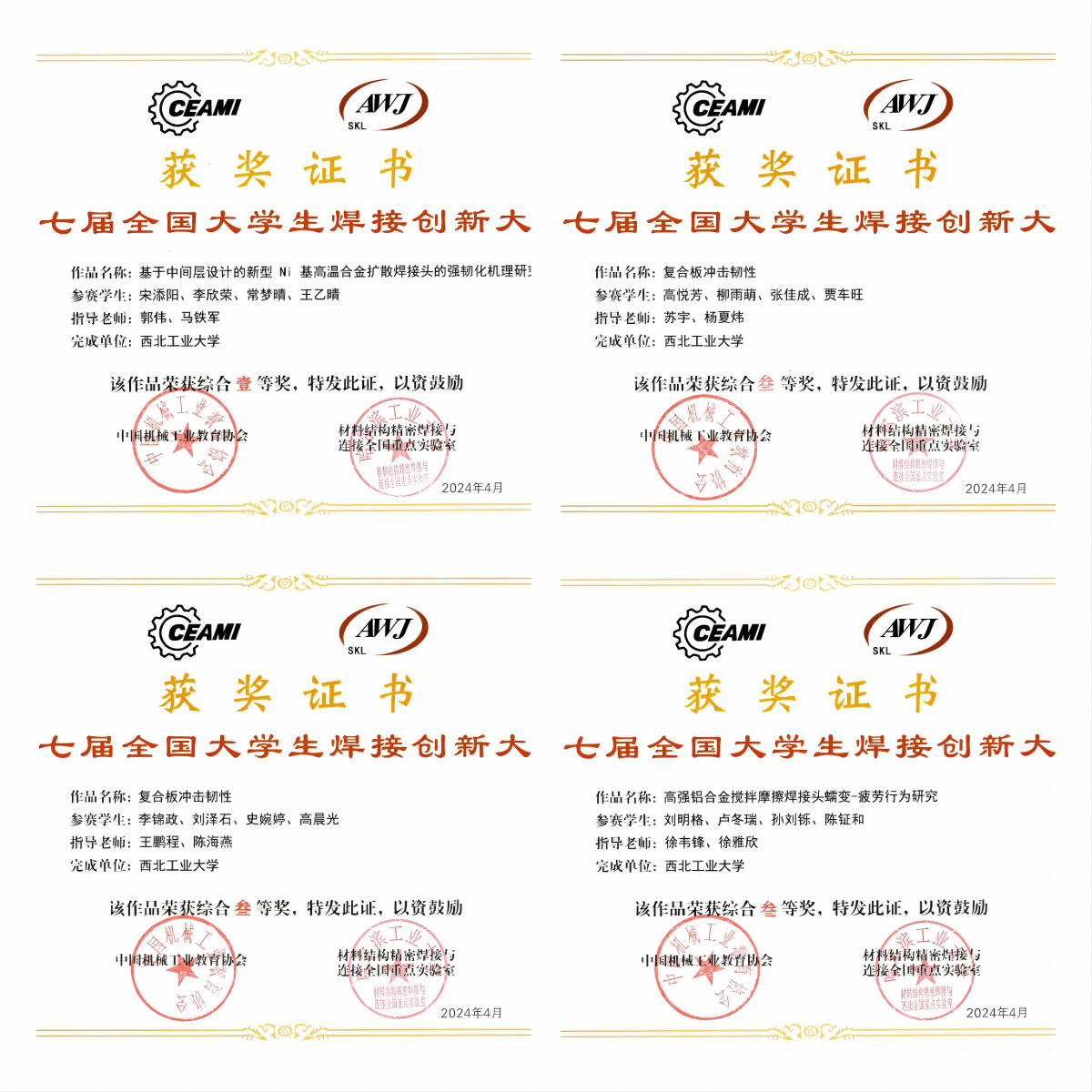 代表队经过激烈角逐,获得一等奖1项、三等奖3项的优异成绩,展现了我院焊接方向学生扎实的专业知识,较强的工程实践能力以及团队合作和创新意识。