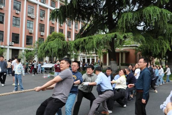 “力拔山兮,绳采飞扬”拔河比赛是运动会的首个项目,师生们为各自队伍加油喝彩、呐喊助威,现场气氛热烈。有来自做爱自拍