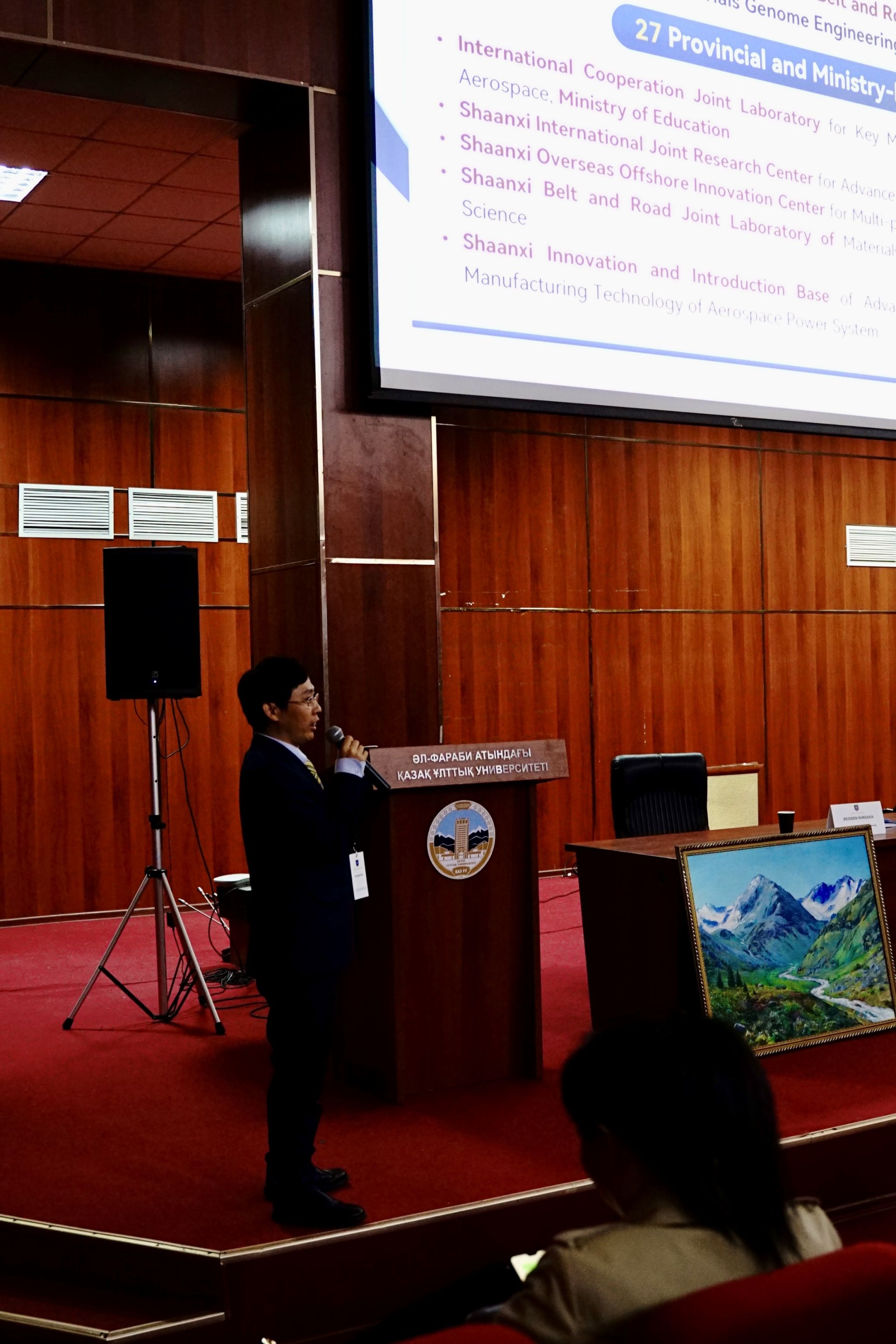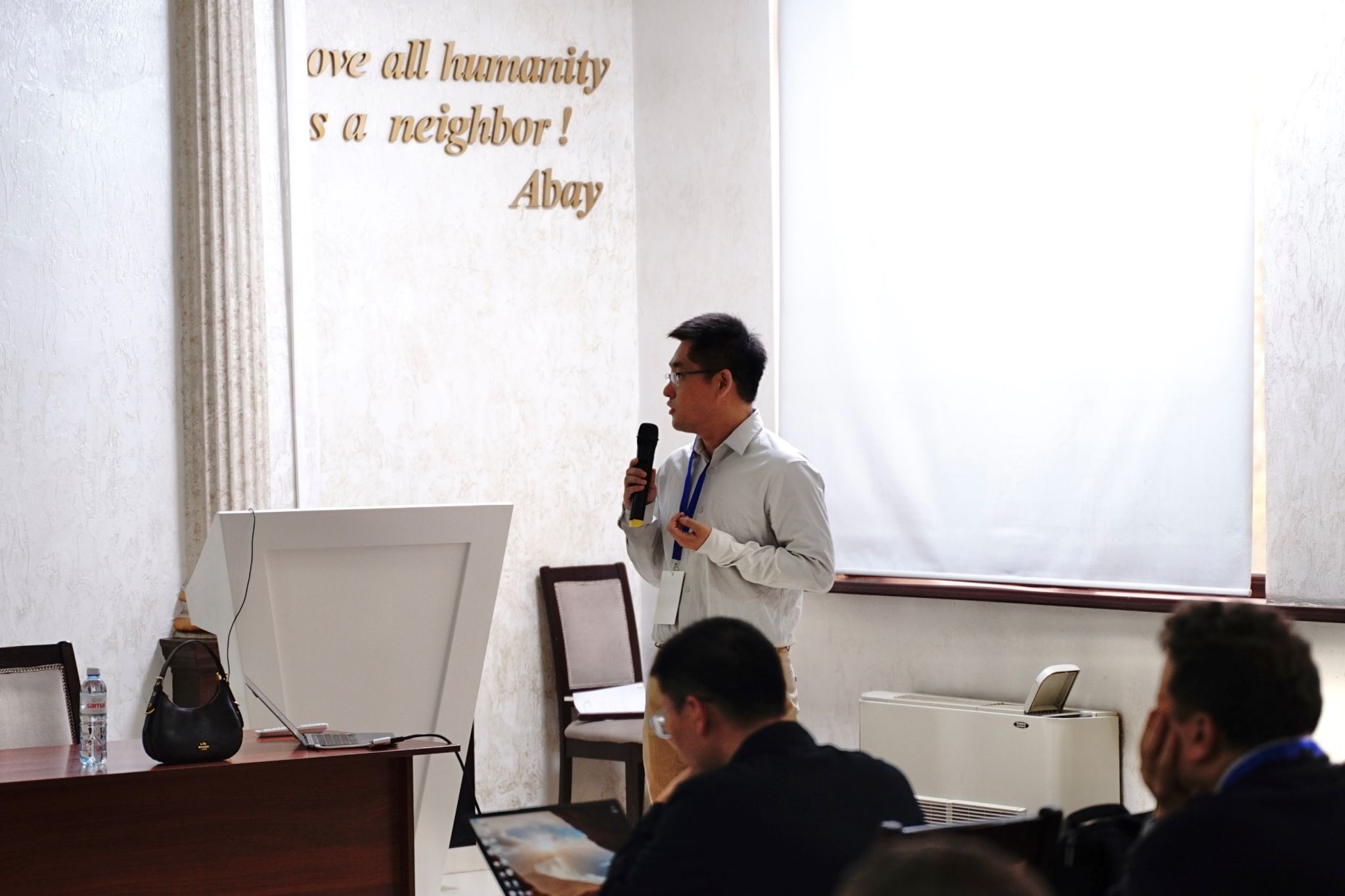 下午的会议由哈萨克国立大学Yerzhan Mukhametkarimov.副教授和西工大段志遥教授共同主持。西工大赵清华教授就“缺陷工程与新型光电子器件”进行了介绍,讲述了各种缺陷控制策略对二维硒化铟(InSe)光电探测器检测性能的影响。段志遥教授就“用计算X射线吸收光谱解码原子结构”进行了探讨,指出可再生能源的生产和转化依赖于高效的催化剂。