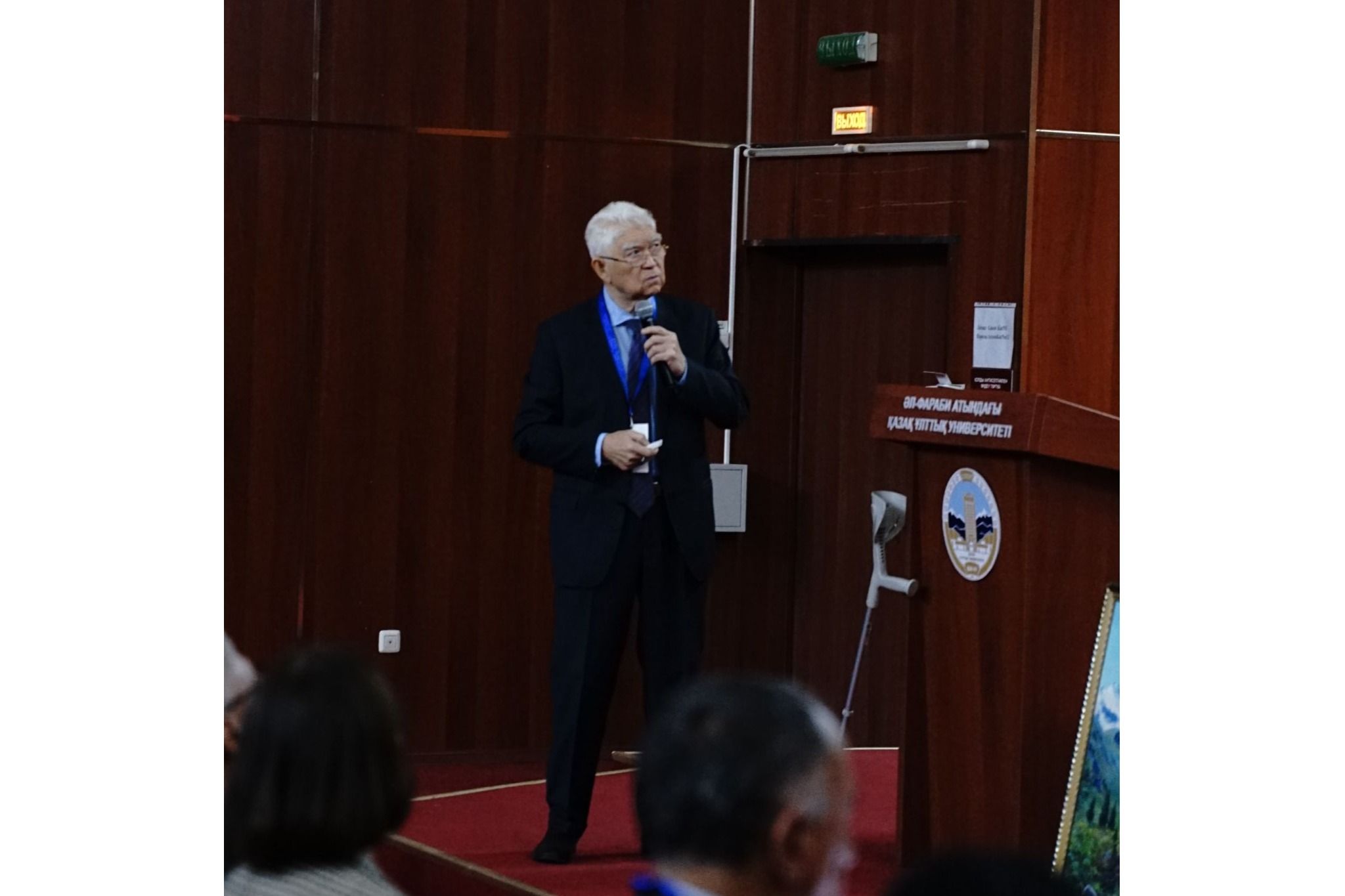 Nurzada Beissen教授主持全体会议。与会者聆听了来自俄罗斯赫尔岑国立师范大学的Kolobov A.V.教授关于“硫属元素:电子材料的下一代”的报告。