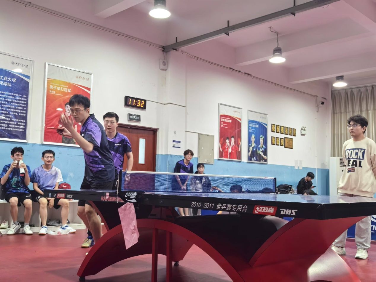 在乒乓球比赛中,我院队伍在淘汰赛中打败教改学院和自动化学院,跻身季军。团队永不言弃的体育精神深深感染了现场的观众。