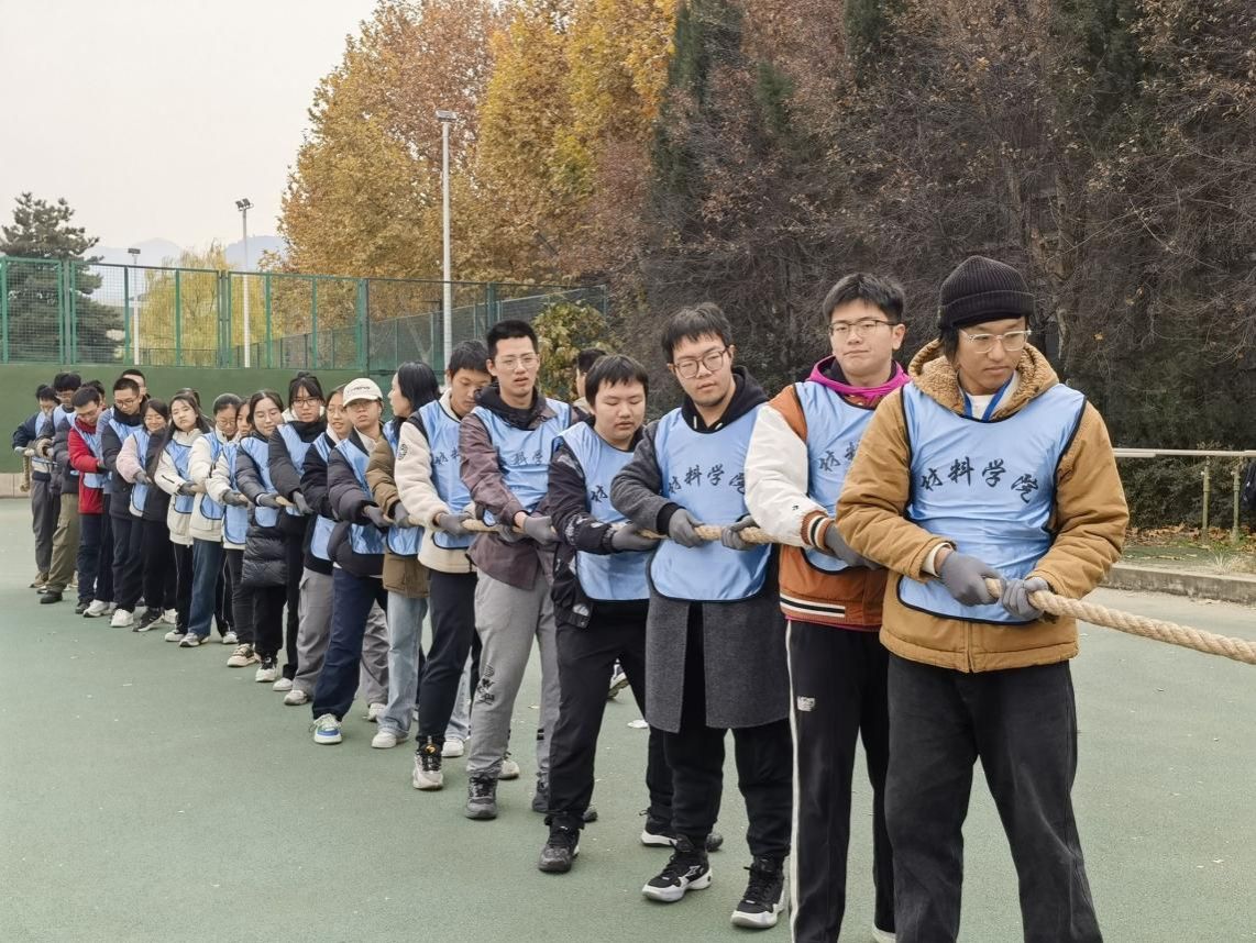 的凝材聚力队犹如一股不可阻挡的力量,迅速进入状态,与生命科学与医学部的队伍展开了激烈的较量。他们脚步稳健,口号响亮,每一次用力都凝聚着团队的智慧与力量,最终连下两城,赢得了现场观众的阵阵掌声。