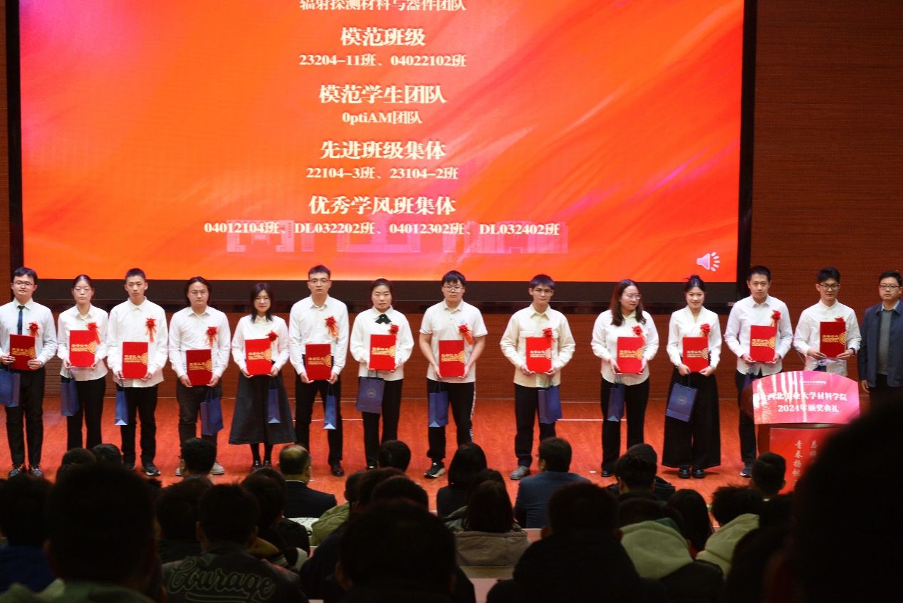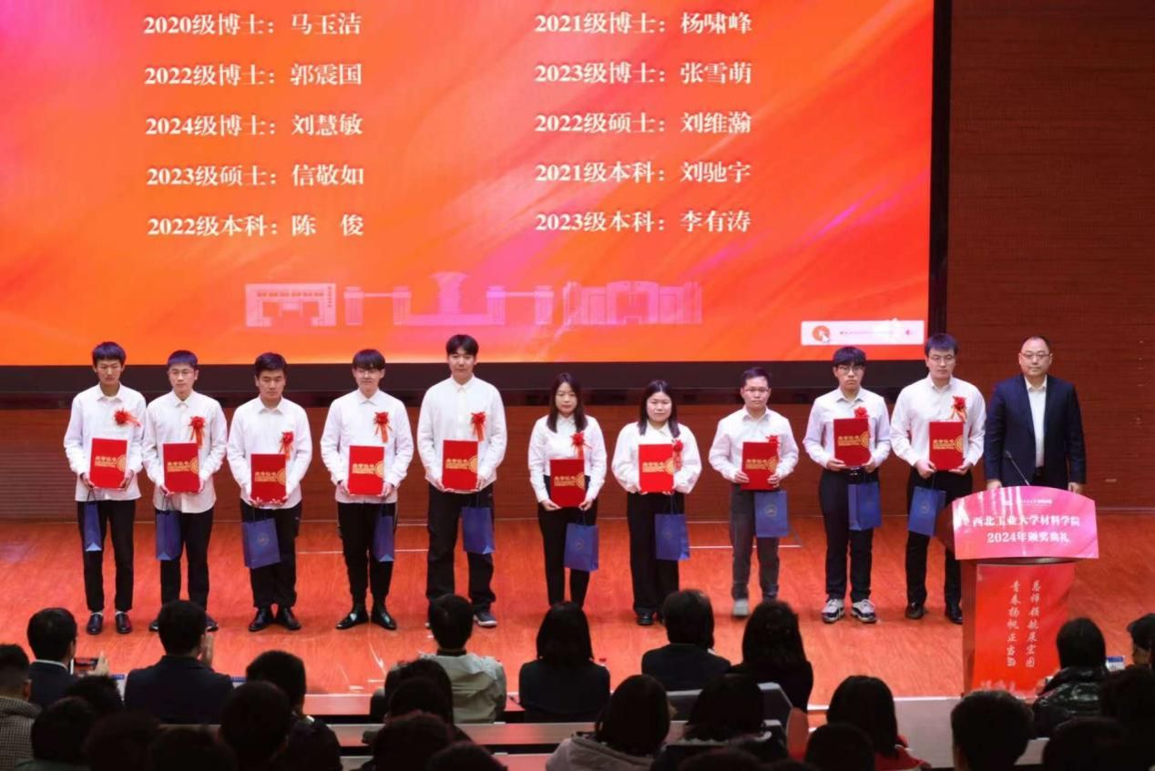 禹亮宣读获奖名单,他激励同学们向榜样学习,敢于担当、追求卓越、肩负使命,为实现“天下工大、世界三航”远景目标书写属于材料学子的青春篇章。
