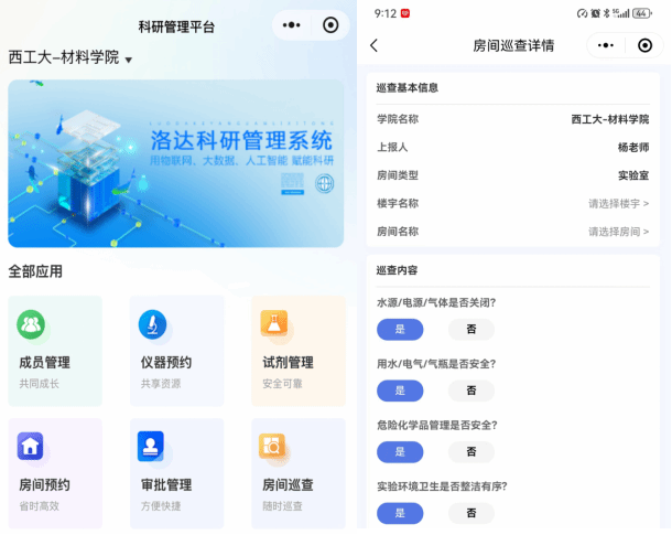 检查过程中,学院首次启用在线巡检小程序,仅需简单点选,即可完成巡检及上报流程。此外,检查组重点围绕实验室危险化学品的使用与存储、消防设施配备与维护、用电安全、仪器设备运行状况以及实验室安全管理制度的落实情况等方面展开了全面排查,对每一个可能存在安全隐患的环节都进行了认真核查。