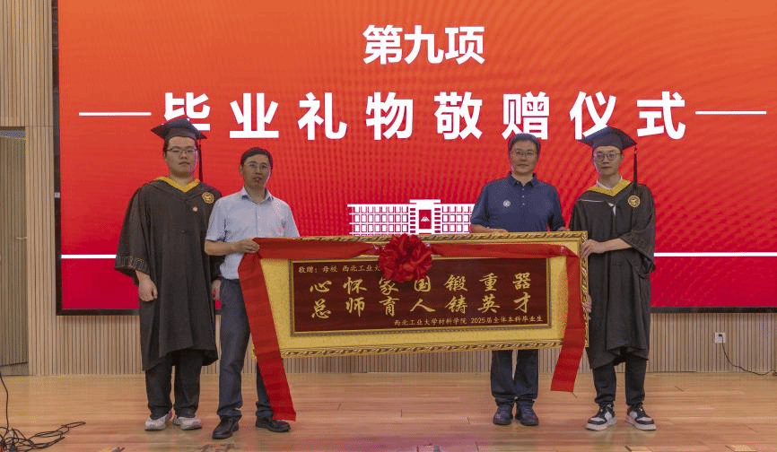 付前刚代表学院对2025届全体毕业生表示热烈祝贺和衷心祝福,向辛勤耕耘的教职员工以及默默奉献的家长们表示衷心感谢。他回顾了同学们在校学习成长的点滴,在毕业生即将开启新的人生旅程之际,对同学们寄予了三点殷切期望:一是要做新时代的材料追梦人;二是要做有担当的材料强国建设者;三是要做全面发展的新时代青年。他希望同学们将个人追求融入民族复兴,找准定位,传承西工大“为国铸剑”的精神,既要能在实验室“坐冷板凳”,也要敢在工程一线“啃硬骨头”。保持积极心态,视挫折为成长动力,以坚定信念创造精彩人生。