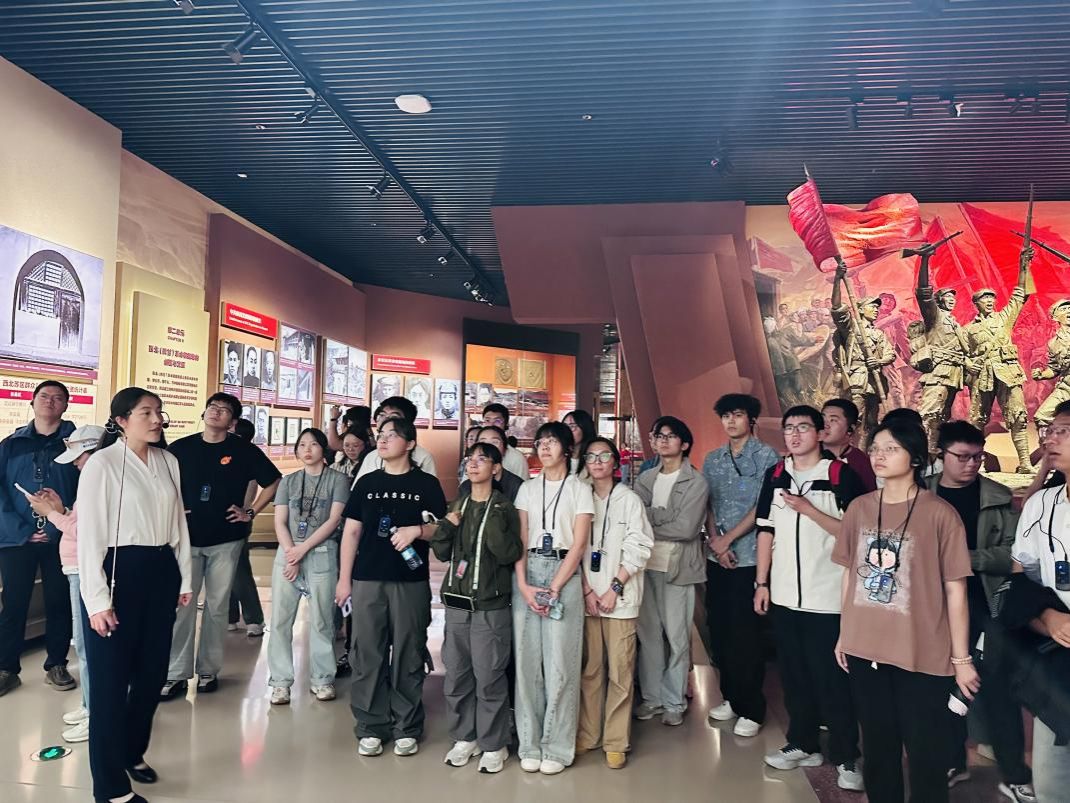 在延安革命纪念馆,同学们通过珍贵的历史资料、图片和实物,全面回顾了党中央在延安十三年领导中国革命波澜壮阔的光辉历程。同学们认真聆听,在历史场景中深切感受共产党人的初心与追求。