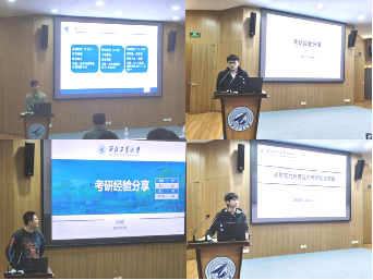 禹亮作考研冲刺动员。他建议同学们,一是忌犹豫,要立刻锁定目标、开始复习;二是发狠劲,以势在必得的自信争分夺秒;三是打久战,要规律饮食、坚持运动,以健康体魄支撑百日高强度攻坚;四是能抗挫,以平稳心态穿越低谷,笑到终场。会上,肖宇翔、贺刘柏翔、何三润、陆致远等四名研究生代表从考研形势、复习方法、心态调适、学习策略等方面分别做了分享。在时间管理方面,他们表示要科学规划,高效利用碎片化时间,做到劳逸结合、稳步推进;在心理建设方面,要保持积极乐观的心态,正确看待备考过程中的压力与波动,学会自我调节;在复习策略方面,要夯实基础、构建知识体系,避免盲目刷题和机械记忆。整场分享内容丰富、干货满满,赢得了同学们的阵阵掌声。