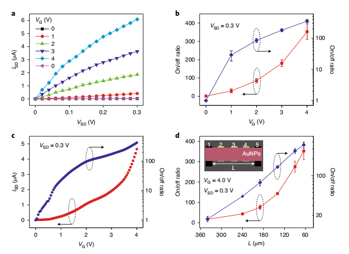 目前,相关研究成果以“Transistors and logic circuits based on metal nanoparticles and ionic gradients)”为标题发表发表在Nature Electronics(DOI:10.1038/s41928-020-00527-z)上(李铁虎教授指导的博士生赵星为第一作者,做爱自拍