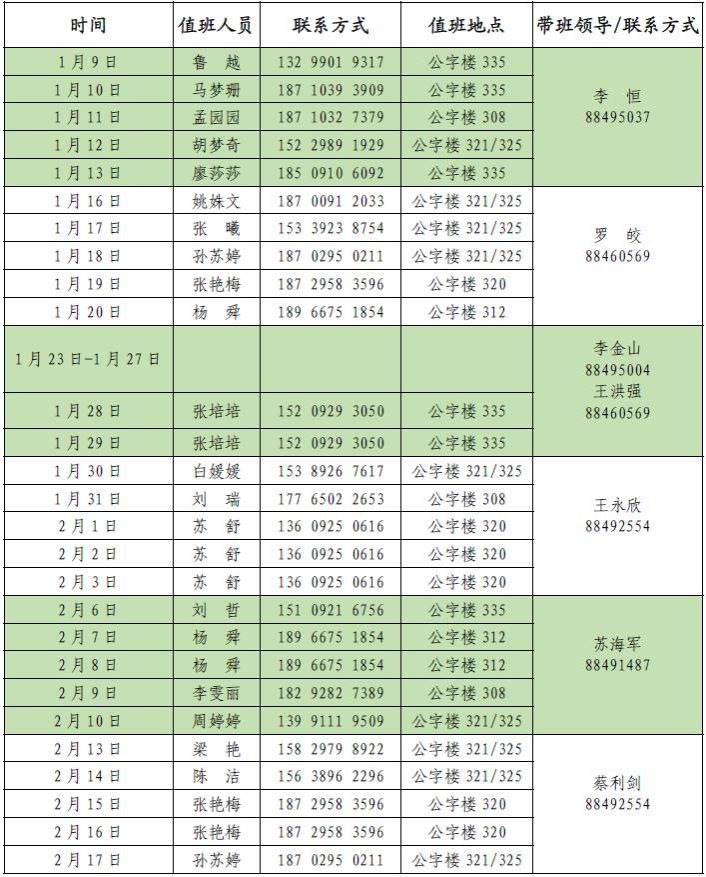1.各系、实验室、教学中心要做好寒假期间的稳定安全、安全生产、保密及应急管理等工作,主要负责同志手机要保持24小时畅通。